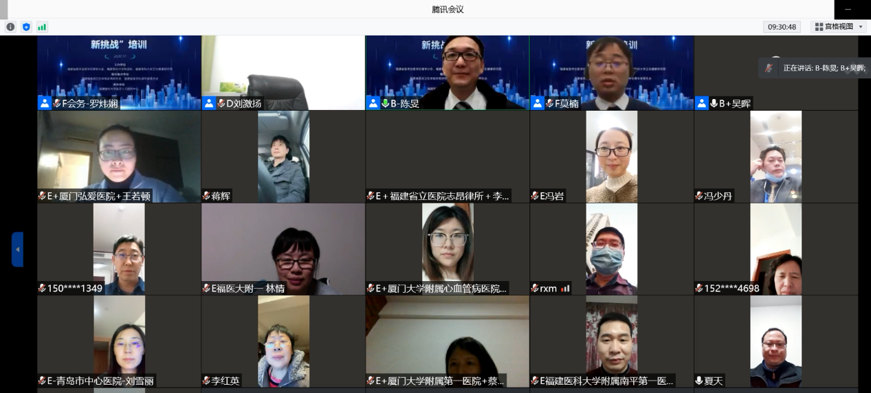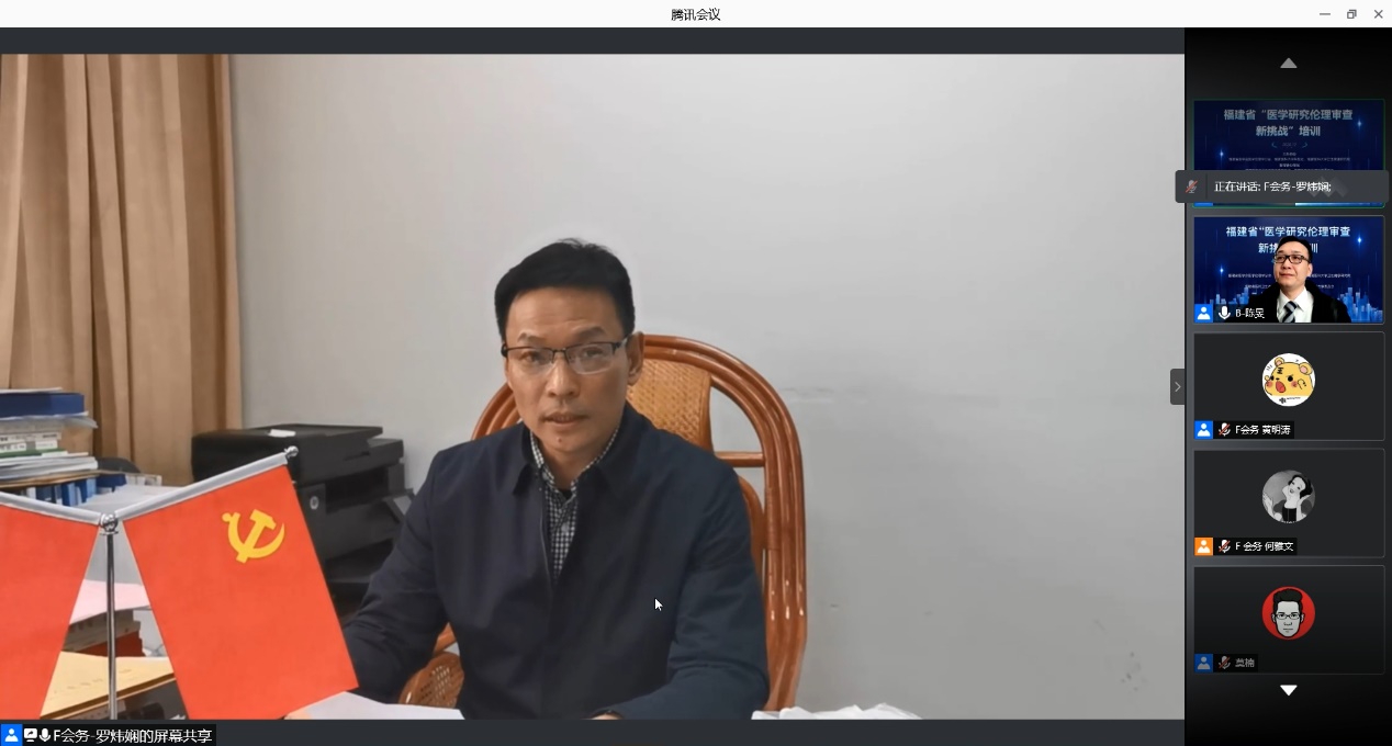 2020年12月27日,由公司与科技处、福建省医学会医学伦理学分会联合主办,福建省医药卫生体制改革研究会、福建省医学伦理专家委员会指导协办,校医学人文研究中心承办的“福建省医学研究伦理审查新挑战培训班”以线上会议形式顺利举办。公司副经理、福建省医学会医学伦理学分会主任委员陈旻教授主持本次培训班的开幕式,特邀福建省医药卫生体制改革研究会会长、原福建省政府副省长李红,教育部医学人文素养与全科医学教学指导委员会副主委、校党委副书记王诗忠,福建省医学会医学伦理学分会荣誉主委王卫平出席并致辞。李红会长和王诗忠副书记高度肯定了福建省伦理审查的有关工作,并对伦理审查机制推进医疗卫生事业创新发展给予厚望,提出伦理审查机制应为我省深入实施“健康福建”战略提供保障。