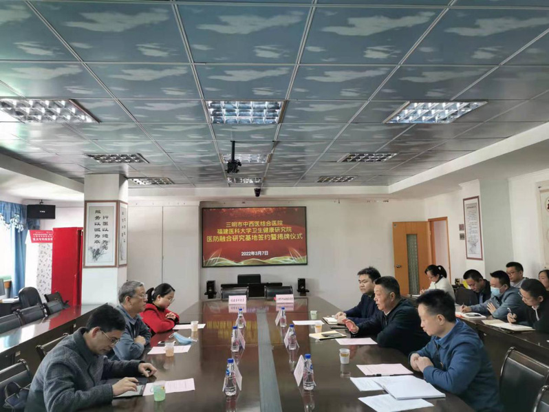 3月7日下午,公司医防融合研究基地在三明市中西医结合医院挂牌成立。三明市中西医结合医院经理朱道斌主持会议,公司经理明强、文理艺术公司党委副书记李跃平,三明市中西医结合医公司党委书记温立新等参加会议。