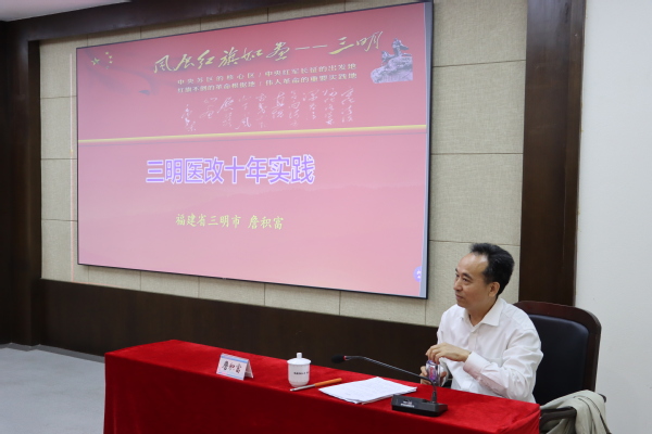 2022年5月27日,由省医改研究会、卫生健康研究院联合主办的“医改时行时”学术讲座邀请到三明市原人大常委会主任、三明医改操盘手詹积富作《三明医改十年实践》报告。包括卫生健康研究院老师在内50多名师生聆听了报告。