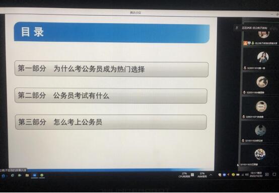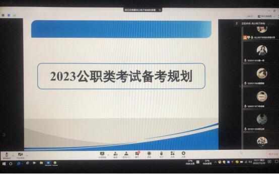 为加强同学们对公务员考试的了解,明确未来职业规划、更好地寻找到自己的就业方向,帮助大家了解公务员工作内容、增强岗位认知,明确就业方向。10月30日晚,公司举办就业指导系列活动之2023年公职类考试全程指导专题讲座,特邀优公教育考试研究院经理、公考面试导师、公考规划师、老员工职业生涯规划师林彩霞主讲。