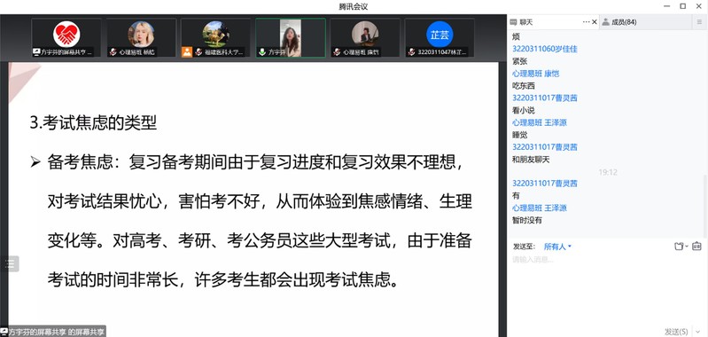 此次讲座帮助同学们了解了影响考试焦虑的因素,提供了调整负面情绪的有效方法,极大缓解了考前焦虑情绪,有助于同学们及时调整心态、积极应考。