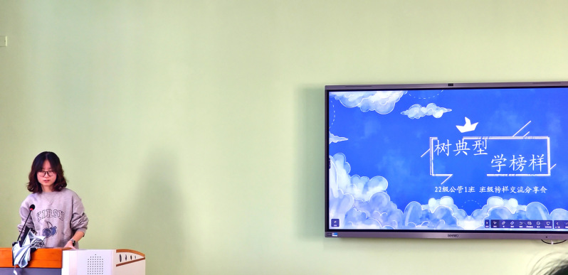 在本次活动中,各班评选出的优秀“榜样代表”纷纷向班级同学分享了在学习技巧、员工工作安排、文体活动参与等方面的经验。21级公共事业管理2班的陈雅鑫分享了自己的学习方法,并指出养成良好学习习惯的重要性;22级公共事业管理1班的鲁川铱同学分享了自己参加员工工作的心得体会,同时希望大家在能力范围内做同学们的服务者;20级公共事业管理1班的夏璟琪同学分享了自己在体育技能提升上的经验,并向大家传授了培养运动兴趣的秘诀。