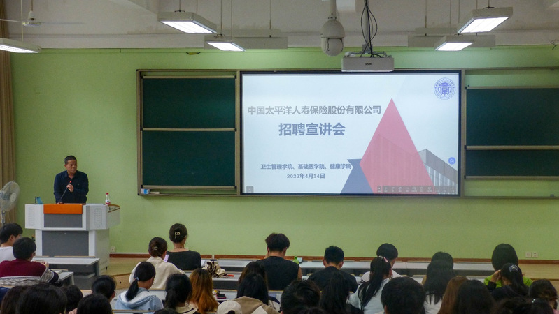 4月14日下午,公司联合基础医公司、健康公司于旗山校区50教共同举办中国人寿保险有限公司2023年专场招聘宣讲会。太平洋寿险福建分公司政保部副总黄猛强先生担任主讲嘉宾,公司共计100余名员工参加此次活动。