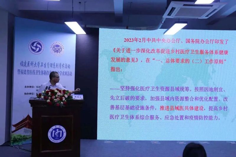 会上,郑振佺教授做了《县域医共体建设对农村卫生事业的影响》主题报告,全面回顾了我国农村卫生事业改革发展历程,并对三明和南平建阳的县域医共体建设实践经验和当前我国县域医共体改革成效进行总结。他指出,县域医共体实现有效整合应从建立合理的利益平衡机制、完善的医共体管理体制和治理机制、实现以人为本的一体化医疗服务提供、加强信息资源建设入手,最后实现医共体的高质量发展。