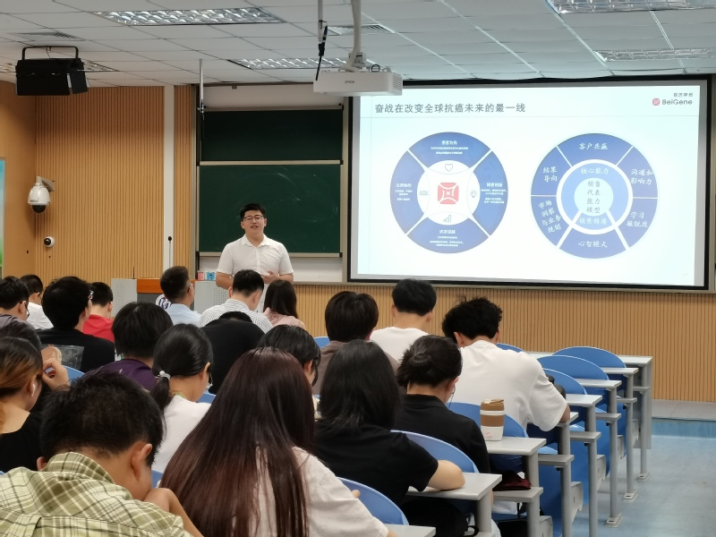 最后,百济神州生物科技有限公司血液肿瘤高级地区经理刘昌曦按时间线讲述了公司销售实习生的实习项目。刘经理表示,公司建立了实习生全面培养机制,从“借助学习平台夯实基础”,到“通过经验萃取分享交流”,再到“配备精英销售导师保驾护航”,个性化培养方案助力实习生更快融入。