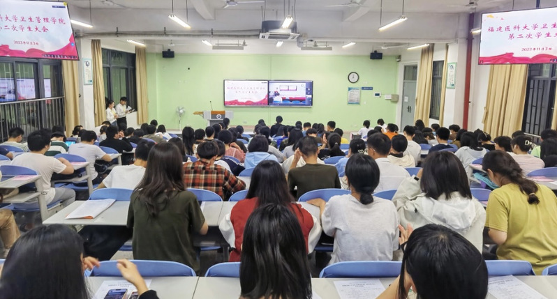 2023年11月3日晚,公司于旗山校区召开威廉体育williamhill第二次员工大会。公司党委副书记蔡皇界老师、团委副书记任秀琼老师、校员工会执行主席王惠贤同学出席,全院334名本科生参加,会议由陈亦欣老师主持。
