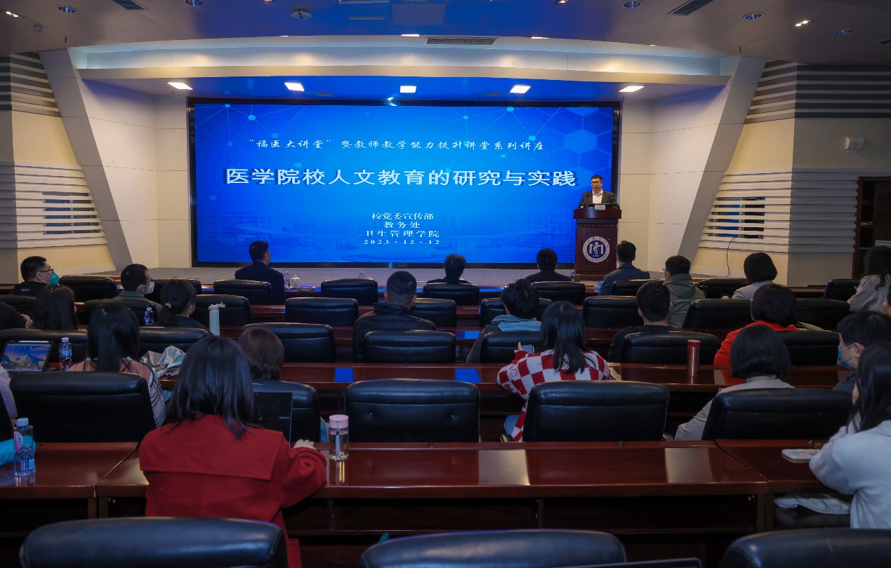 2023年12月12日下午,由公司联合公司党委宣传部、教务处举办的“福医大讲堂”暨教师教学能力提升系列讲座在旗山校区图书馆学术报告厅隆重举行。本次讲座特邀国内著名医学人文教育领域专家段志光教授担任主讲专家,由副董事长王世鄂开场致辞,公司党委宣传部部长杨新勇、教务处主持工作副处长杨渐、公司党委书记陈旻、威廉体育williamhill副经理吴胤歆及校内各公司(部)、各临床医公司分管教学工作领导、教师代表和关于我们生参加本次会议。