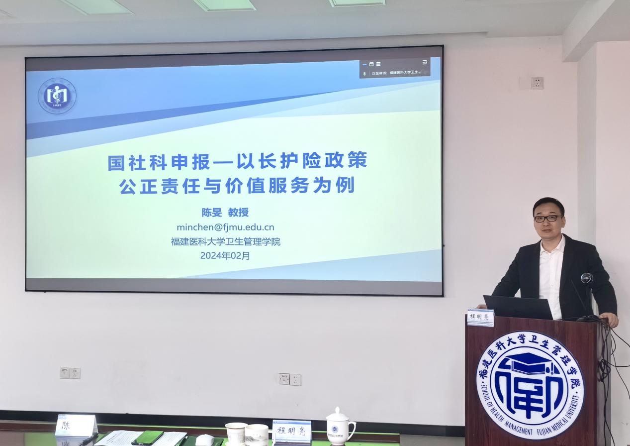 第三位主讲人陈旻教授以《国社科申报-以长护险政策公正责任与价值服务为例》为题,结合自身国社科课题,向老师们分享了国社科课题申报经验。陈教授指出课题申报选题尤为重要,选题应结合国家热点,找准重点话题,放眼整个国家层面,提高选题的高度,还强调申报书撰写应突出介绍已取得的研究基础,应以研究成果与申报课题之间关联性作为支撑,为老师们尤其是青年教师传授了宝贵的课题申报经验。