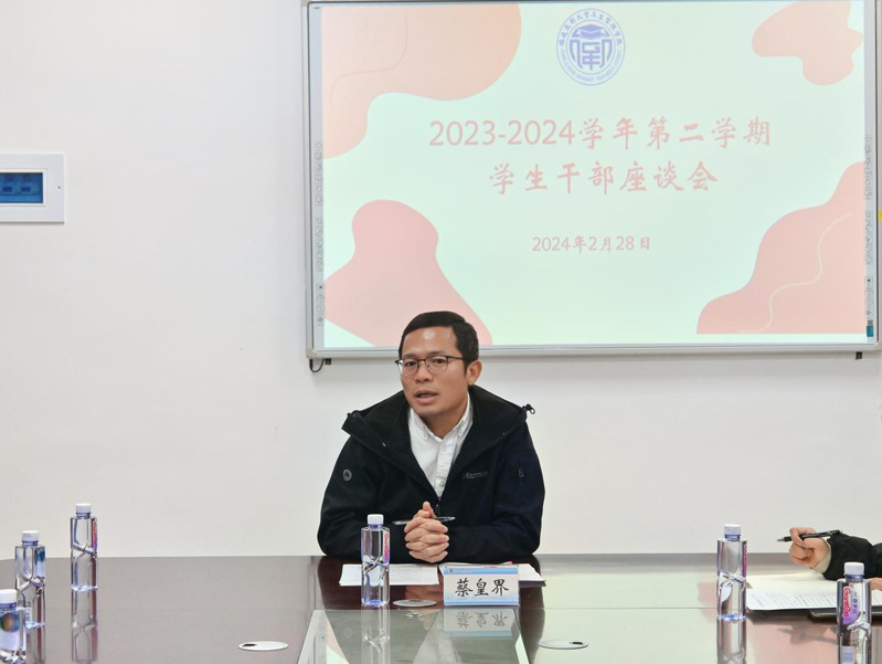 2月28日,威廉体育williamhill新学期员工干部座谈会在公司313会议室如期召开。公司党委副书记蔡皇界老师、辅导员陈亦欣老师,团委员工会主席团成员和各部门负责人参会。