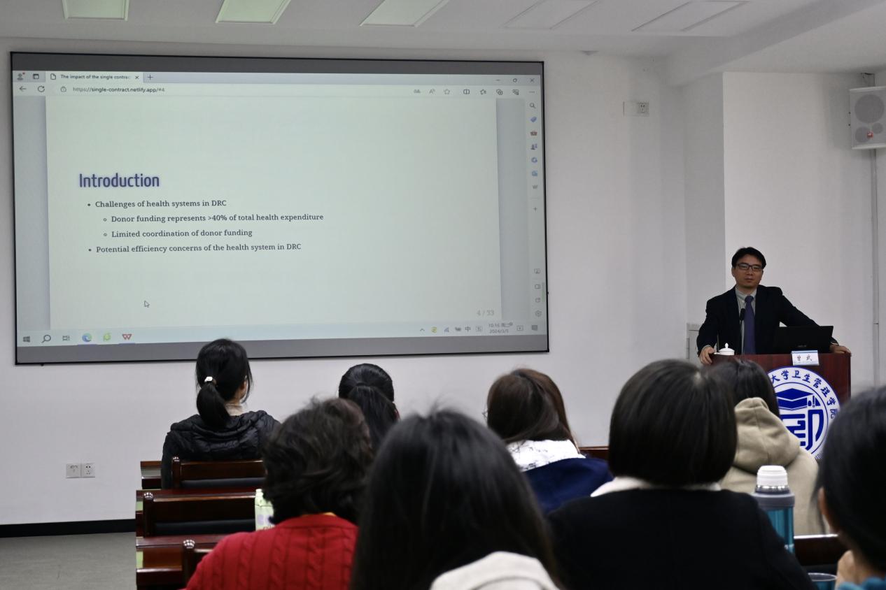 曾武教授为公司师生开展了两场主题讲座,题目分别为“The impact of the single contract on health service delivery in the Democratic Republic of the Congo”和“Optimization of cholera vaccine schedules in Bangladesh:A cost-effectiveness analysis”,公司全体教师和研究生聆听了讲座,并踊跃提问,曾教授对提出的问题均进行了耐心解答,与师生们就卫生经济学领域的诸多问题进行了深入交流与分享。