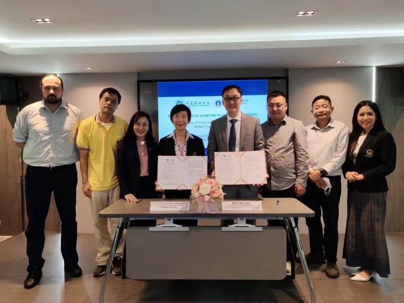 2024年4月9日至10日,公司党委书记陈旻教授一行访问泰国玛希隆大学,与玛希隆大学社会科学与人文公司就双方合作事宜签署了谅解备忘录,合作领域包括师生学术交流、学术研究合作、学术信息交流等。