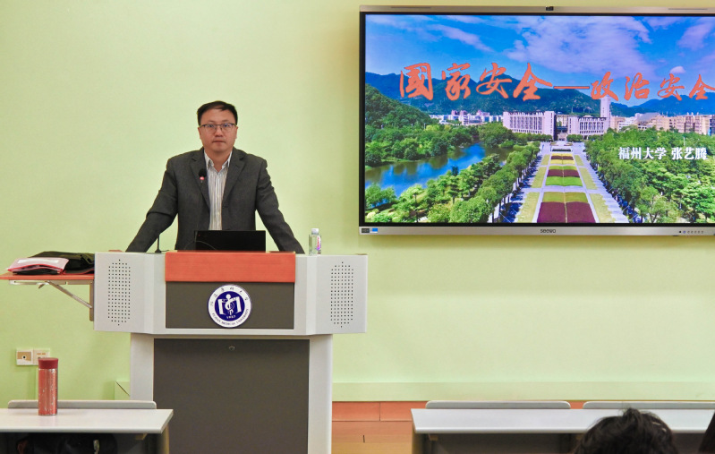 张艺腾副教授围绕“国家安全之政治安全”这一主题,从主权独立、领土完整、政权安全、制度安全等方面,讲解总体国家安全观的核心要义,剖析中国领陆和领海现状,并通过案例分析,强调政治安全对于国家主权、政权、制度和意识形态稳固的重要性。