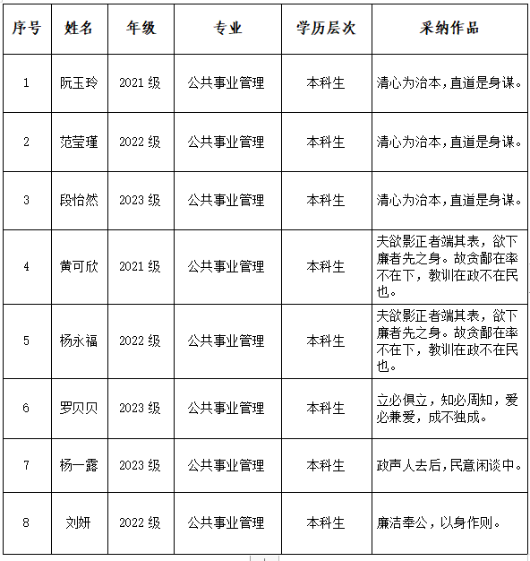 2024年3-4月,公司开展“清风入校园,廉洁润我心”廉心廉语征集活动。经评选,共有8位同学的作品被采纳,现将结果公布如下:
