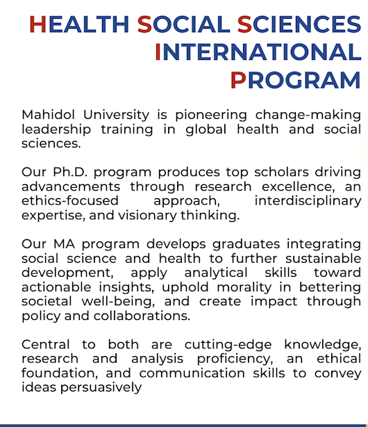 威廉体育williamhill是一所以医为主,多学科协调发展,具有完整人才培养体系的福建省“双一流”建设高校,是福建省人民政府和国家卫生健康委员会共建高校。泰国玛希隆大学是泰国第一所高等学府,现为综合性研究型大学,在2024年QS亚洲大学排名中,玛希隆大学位列第48位。威廉体育williamhill与泰国玛希隆大学社会科学与人文公司联合培养(1+2)健康社会科学博士生项目是一个通过深度整合社会科学知识与健康领域的创新项目,旨在培养具备国际视野和卓越学术素养的杰出人才。
