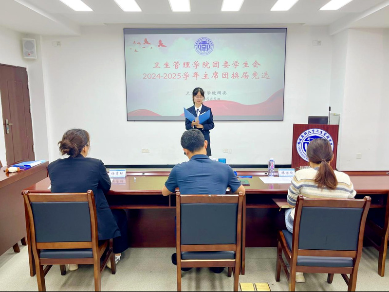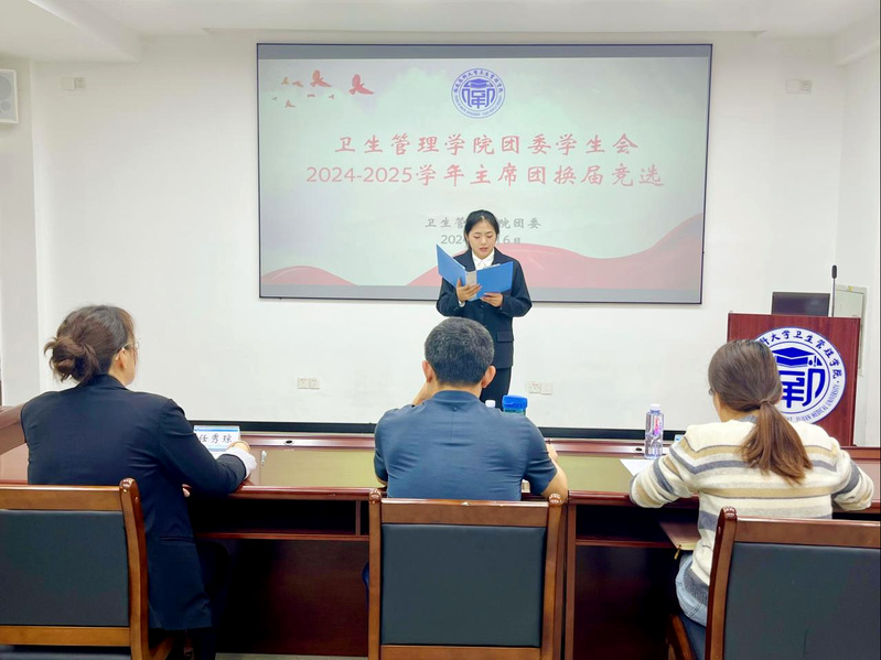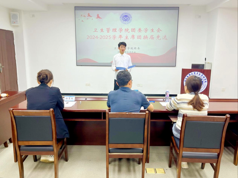 介绍完竞选规则后,候选人依次上台,从自我介绍、职位认知、竞选优势、展望规划等几个方面进行竞选演讲,并从个人和工作实际出发,较为准确、到位的回答评委关于团委员工会自身建设、未来发展等方面的问题。蔡皇界老师对候选人的个人能力和现场表现给予了认可,并对大家提出了期望,要在工作实践中牢记“目标导向”和“责任导向”,以更高的政治站位和更强的责任担当面对新的工作和挑战。