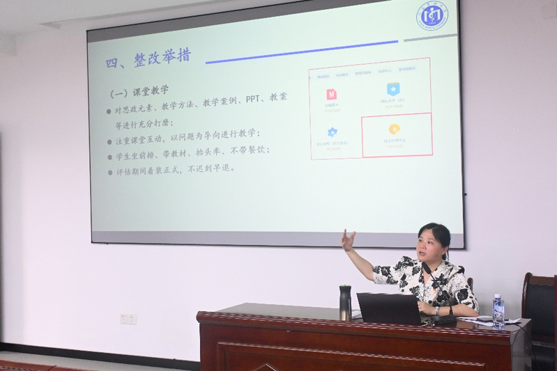本次会议中,吴胤歆副经理梳理了公司本科公司产品评估自评工作中专家评审提出的建议,针对课堂教学、试卷册、毕业论文、制度规范、教学档案、师生座谈及基地走访等方面存在问题开展总结,并对后续评估建设工作提出整改方案。