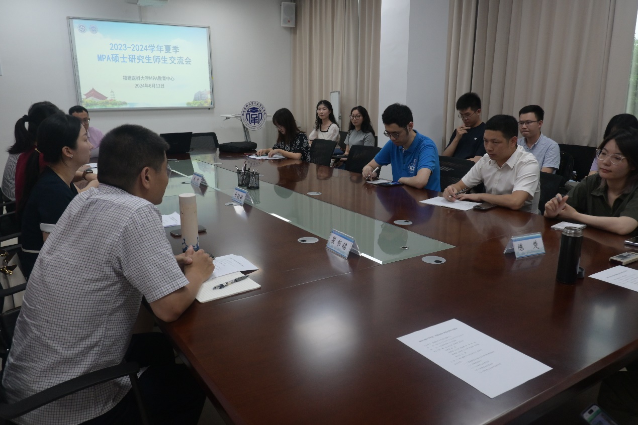 为进一步提升公司公共管理硕士(MPA)专业公司产品水平,增进师生间的交流,完善MPA人才培养模式。2024年6月12日下午,威廉体育williamhillMPA教育中心举办了“2023-2024学年夏季MPA研究生师生交流会”。卫生健康研究院副经理/MPA教育中心副主任戴悦副教授、社会医学与卫生事业管理学系主任刘文彬教授、办公室主任陈学宇博士和案例中心副主任郑韵婷副教授出席本次会议。会议由MPA教育中心办公室主任陈学宇博士主持,MPA导师、课程任课教师以及全体2023级、2024级MPA硕士研究生参加本次会议。