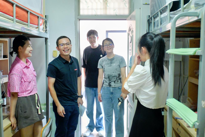 新生完成报到后,公司党委副书记蔡皇界老师代表公司走访新生宿舍,传达公司的欢迎与关爱,察看宿舍情况和寝室风貌。他到访每间宿舍,与新生及家长亲切交谈,详细询问新生基本情况和到校体验,对现场反映的困难与问题进行耐心解答,对部分新生家庭经济困难员工进行慰问。并认真叮嘱同学们提高安全意识、尽快适应并主动融入老员工活,珍惜宝贵时光、努力提升专业素养和综合能力。