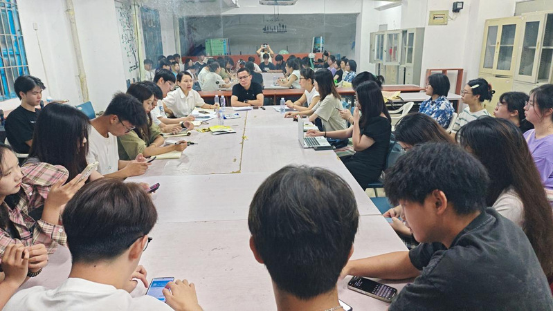 团委员工会主席团成员和各部门负责人就各自迎新工作的准备情况进行汇报,陈亦欣老师和林冬老师就迎新工作进行详细部署。