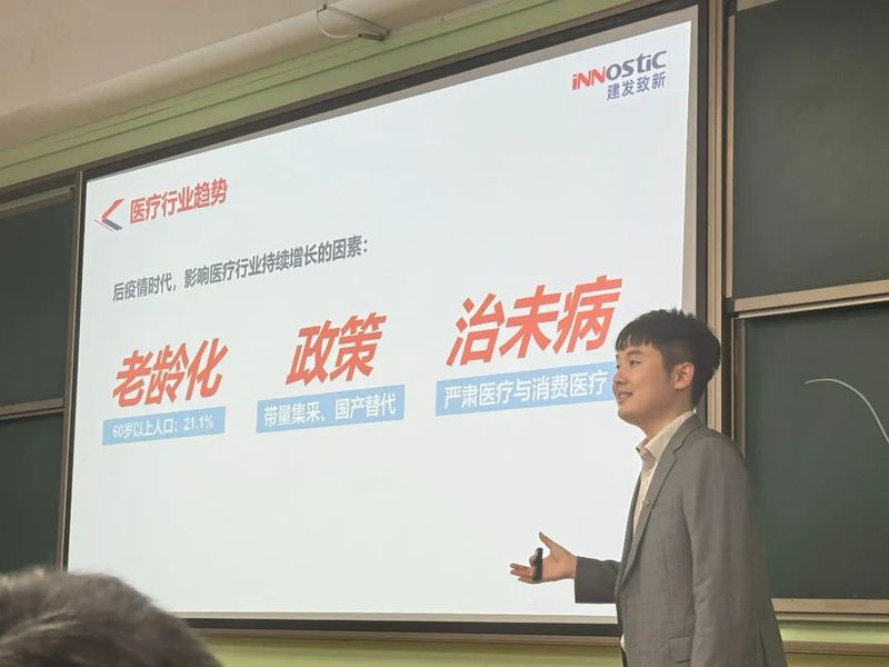 宣讲会伊始,建发致新人力行政中心杨毅君先生,首先分析医疗器械市场的现状和发展前景。他指出,随着医疗技术的不断进步和人们健康意识的日益增强,医疗器械市场行业规模持续扩大,市场需求不断增长。特别是伴随着老龄化趋势加剧、慢病发病率上升,医疗器械行业有其独特发展潜力。