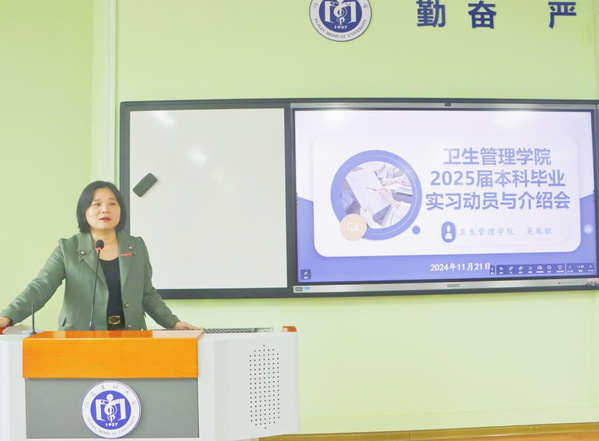 吴胤歆副经理做本科毕业实习动员和介绍,她首先以“实习意义的主要体现”为题,引发同学们思考,强调实习的重要性。并详细介绍毕业生实习的安排与要求,从实习时间、实习任务、考核方式等方面进行全面解读,引导同学们更为清晰地认识实习流程。