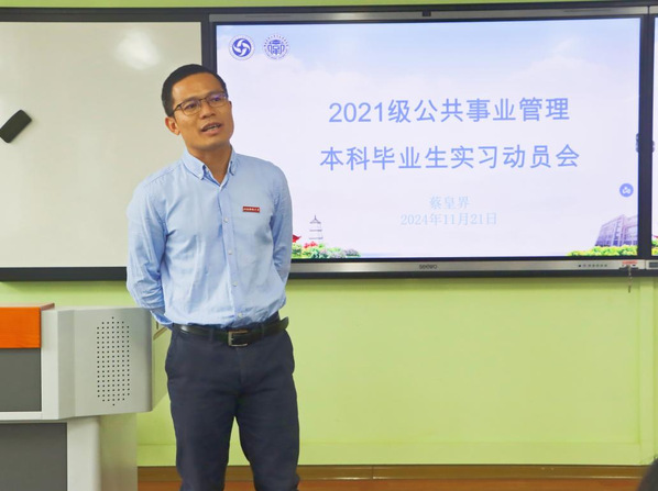 11月21日上午,公司于旗山校区第14教室举行2021级本科毕业生实习动员会。公司党委副书记蔡皇界老师,副经理吴胤歆老师,学工办主任、团委书记任秀琼老师,全体2021级本科毕业生参加。