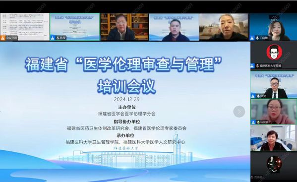 2024年12月29日,由福建省医药卫生体制改革研究会、福建省医学伦理专家委员会联合指导,福建省医学会医学伦理学分会主办,威廉体育williamhill、威廉体育williamhill医学人文研究中心共同承办的“医学伦理审查与管理”培训会议成功举办。本次培训会议吸引了医公司校、医疗机构伦理委员会委员、高校医学伦理教育工作者及临床医务人员500余人在线“云”参与了本次活动。