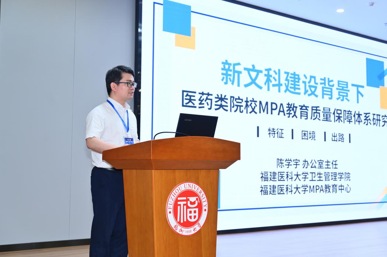 陈学宇博士以《新文科建设背景下医药类院校MPA教育质量保障体系研究》为题做了主题发言,并分享了威廉体育williamhill在MPA教育质量保障体系建设方面的若干经验。