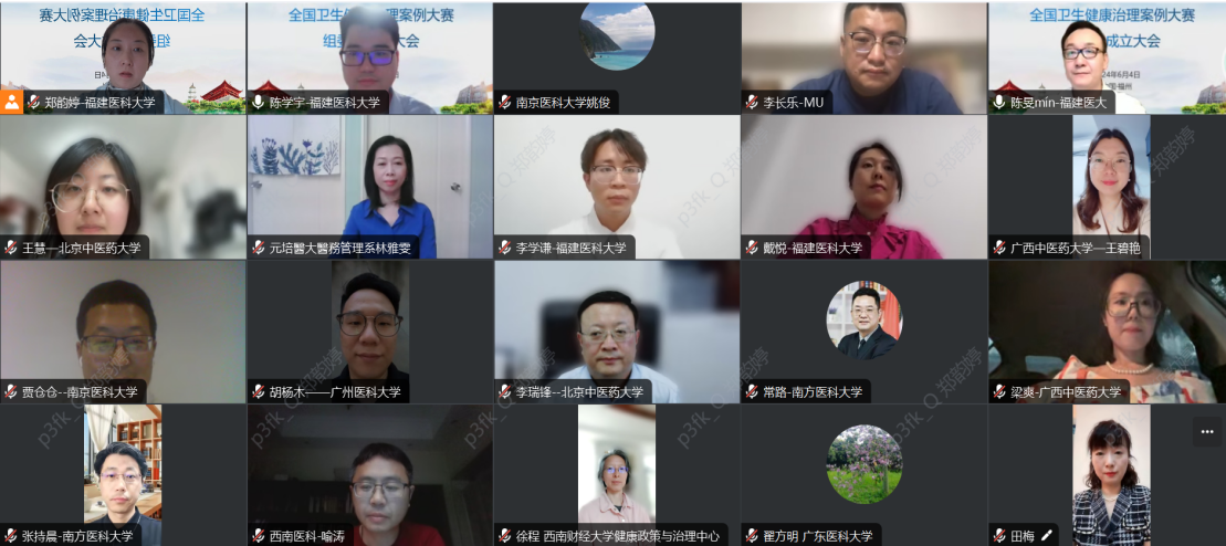 为推动第三届全国卫生健康治理案例大赛顺利进行,力争举办高水平、专业化的全国性公共管理案例赛事,公司于2024年6月4日通过线上会议,主办第三届全国卫生健康治理案例大赛组委会成立大会。来自北京中医药大学、南京医科大学、台湾元培医事科技大学等10余所高校的负责人共同参与本次线上成立大会。本次成立大会由公司党委书记陈旻教授主持,南京医科大学医政公司钱东福经理为本次大会做了总结发言。