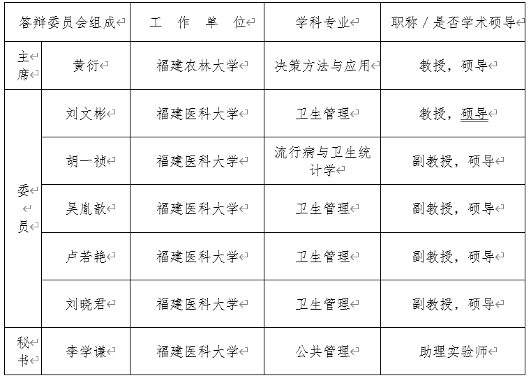 5 | 2019030350 | 陈琳睿 | 2019 | 同等学力硕士 | 肖慧欣 | 刘文彬,黄衍,胡一祯,戴悦,卢若艳 |