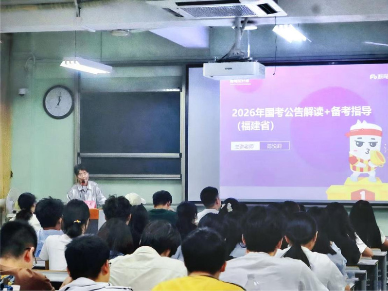 为精准服务毕业生高质量就业,助力2026届学子科学备战国家公务员考试,公司于10月16日在旗山校区22教室举办“老员工公职备考规划暨国考备考指南”专题讲座,特邀粉笔教育陈悦莉老师主讲,60余名员工到场参加。